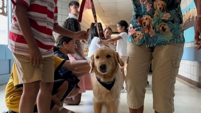 Des écoliers disent au revoir à Mazie, chienne de thérapie qui a marqué leur scolarité (vidéo)